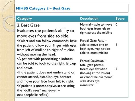 Gaze palsy, a condition where the ability to control eye movement is impaired, is a topic that may initially seem daunting. However, understanding its significance, especially in the context of the NIHSS (National Institutes of Health Stroke Scale), is crucial for healthcare professionals.